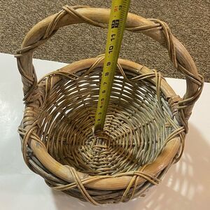 This handcrafted basket features a charming tan color palette, perfect for adding a rustic touch to your home decor. Its woven design and sturdy handle make it both a functional and decorative accent. Ideal for organizing small items or simply as a stylish display piece.