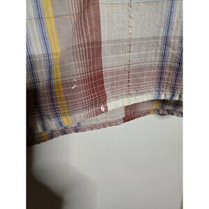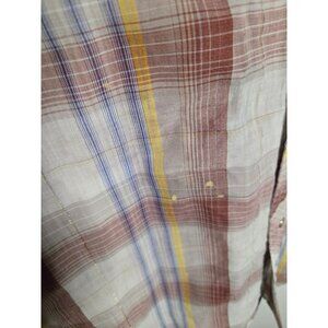 Vintage Rustler by Wrangler pearl snap short sleeve button down shirt in good condition. Some paint stains on front and small discoloration on back(pictured). The shirt is more sheer from wear and would be perfect for layering.