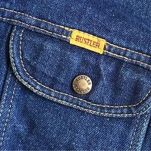 Rustler Mens Denim Trucker Jacket Blue Size L Made in Mexico 100% Cotton Vintage