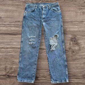 Rustler Men’s Distressed Blue Jeans Preowned Size 34x29 Straight Fit