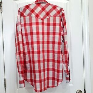 Rustler Mens x-Longtails, Red Pearl Snap Long Sleeve, Size 34/35, Perfect lightweight Cotton for Summer Rodeos,one tiny spot as shown