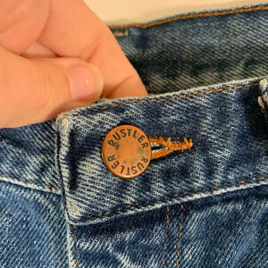 Rustler Shorts Women's 34 Medium Wash 100% Cotton Bull Paint Pockets Button