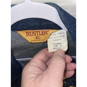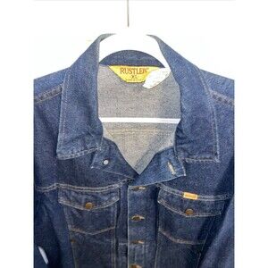 Rustler Vintage 80’s Men’s Jean Jacket Size XL Dark Blue Outdoors Trucker EUC