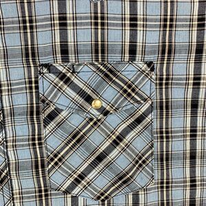 You are purchasing a Rustler Western Shirt Mens Large X Long Tails Blue Plaid Pearl Snap Cowboy Ranch. It is gently pre-owned and in great shape with no visible issues observed - check out the pics for details. While the size tag is missing, it measures Large like the other similar Western shirts I have listed.