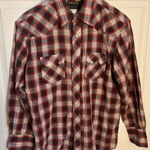 Rustler Wrangler Men's Plaid Print Short Sleeve Pearl Snap Western Shirt