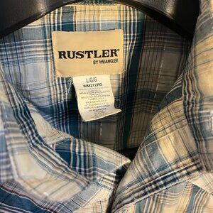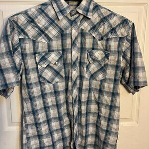 Rustler Wrangler Men's Plaid Print Short Sleeve Pearl Snap Western Shirt