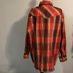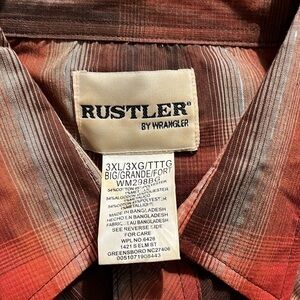 Rustler by Wrangler western cowboy rodeo fair ranch rust plaid long sleeve 3XL.