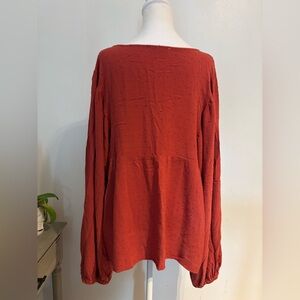 Rustty Dustty Boho Peasant Blouse 2XL Rust Orange Textured Balloon Sleeve Top