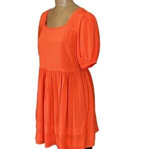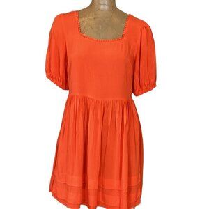 Rusttydustty BOHO Mini Dress Tie Back Puff Sleeve 0XL Orange #285D
