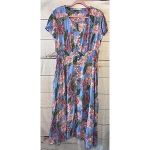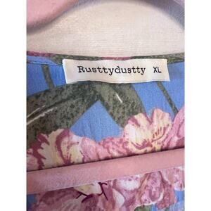 The Rusttydustty Floral Dress in size XL is a colorful maxi dress designed for women. This long dress features a floral pattern in vibrant colors, perfect for a spring or summer wardrobe. With short sleeves and a regular fit, this dress offers a comfortable and stylish option for any occasion. The brand, Rusttydustty, adds a unique touch to this trendy and feminine piece.