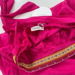 Rusttydustty Hot Pink Geometric Embroidered Tube Top Wide Leg Jumpsuit Medium, New with Tags!
