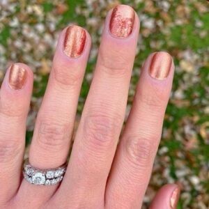 Coppery, paint-dabbed design. Subtly distressed look. Easy application.
