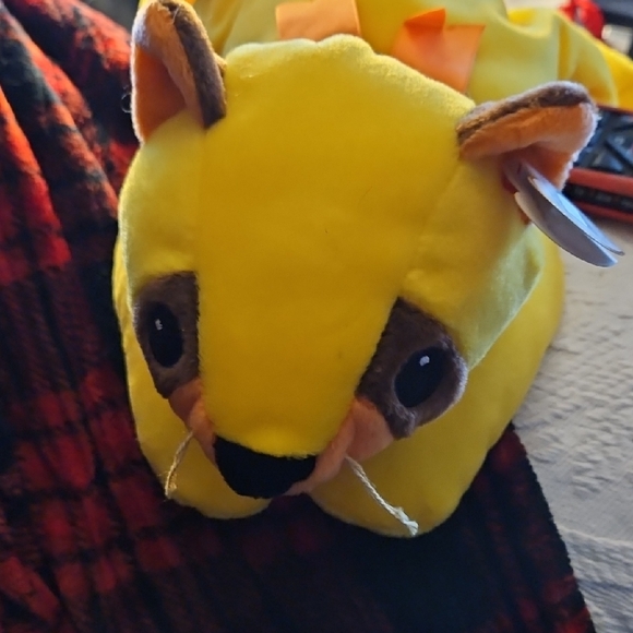 Adorable yellow plush toy with brown accents. Soft and cuddly design.