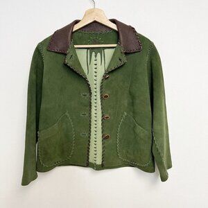 Rusty Dorr Originals Handcrafted Deerskin Outerwear Green Brown Jacket Sz M/L