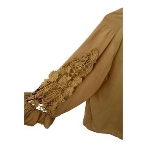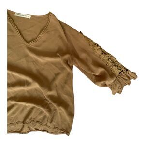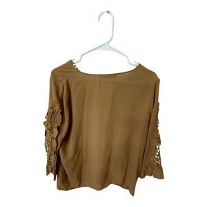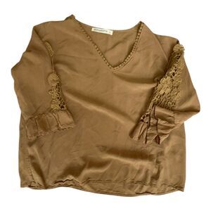 Rusty Dusty blouse Womens size Large Pullover brown lace 3/4 Sleeve Loose