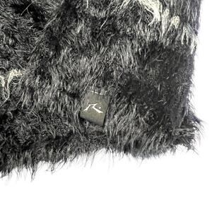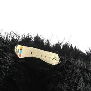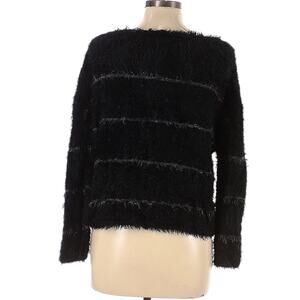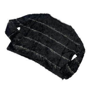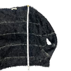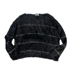 Rusty Eyelash Sweater Black Striped Fuzzy Knit Crew Neck Cropped Women's 10