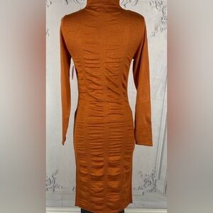 Rusty Orange Bodycon Long Sleeves Midi Sweater Dress