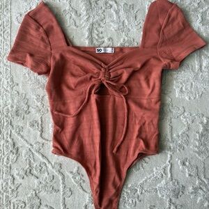 Rusty Orange Tie-Front Ribbed One-Piece
