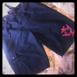 Black Rusty Boys Swim Trunks with red logo on front leg and plain design on back waist. Velcro and lace up fly. Size 16 Boys, like new. No signs of wear. Wore once. Non smoking home.