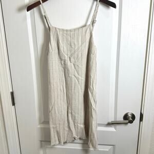 Rusty Tunic Top Adjustable Straps Frayed Hem Linen Blend Ivory Black Women’s XS