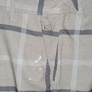 They are a size 38 with an inseam of about 12". There is some paint on left pocket area. See pic.