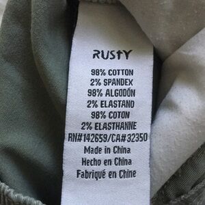 Rusty joggers. Two front working pockets and one working back pocket. Elastic waistband. No size listed please see photos.