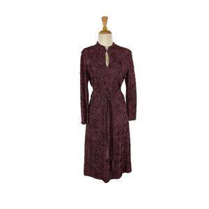 Ruth Chagnon L Maroon Dress Midi Belt Soutache 70s VTG Modest A-Line Cottagecore