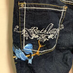 Ruthless Art Vintage Blue Dark Wash Low Rise Embroidered Bootcut Jeans Sz 13/31