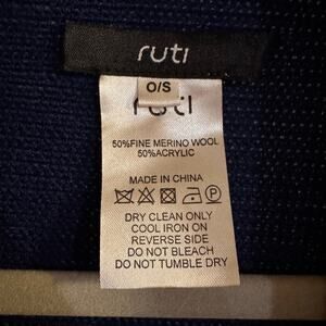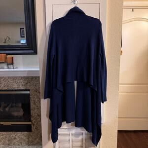 Ruti Fine Merino Wool Blend Open Waterfall Knit Cardigan Asymmetrical Blue OS