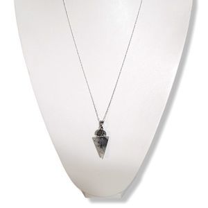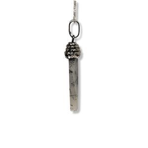 Rutilated Quartz Pointing Stone Arrow Gunmetal White Crystal accents Pendant 24"