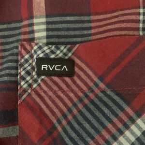Rvca Men’s size large short sleeve button down shirt plaid red navy cream gray
