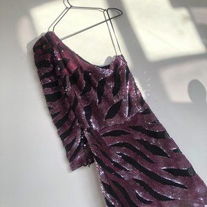 Rêve Riche Maxx Mini Dress Metallic Mauve Pink Black Sequin Party 38 NWT $1295