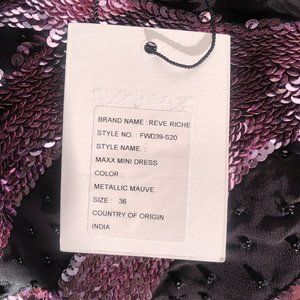 Rêve Riche Maxx Mini Dress Metallic Mauve Pink Black Sequin Party 36 NWT $1295