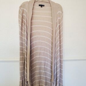Rxb Striped Long Open Front Cardigan Long Sleeve Sweater Beige Boho Size M