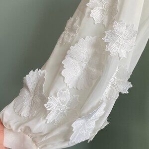 Was planning to wear this while getting ready but went with something else. Perfect for a bride! The Saint-Tropez Robe features sheer poly chiffon, 3D floral bishop sleeves, a flattering V-neckline, and a set-in belt for an effortlessly romantic look.