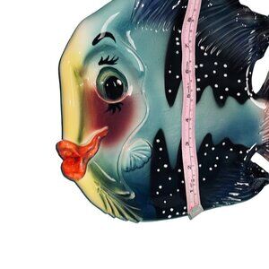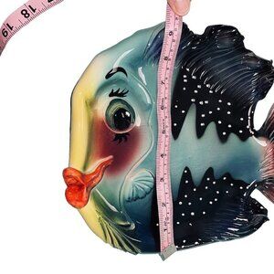 This is a whimsical colorful ceramic fish to use as a platter, an accent or wall hanging.