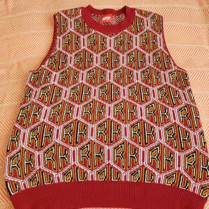 This heavy, high quality knit burgundy sweater vest with RK monogram all over print. Super stylish. Great layering piece.