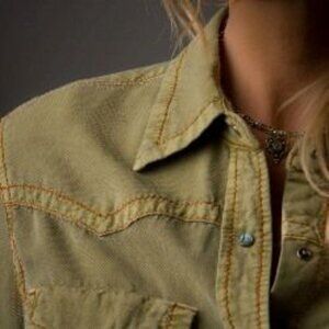 This is the BLACK color shirt. 53/37 Silk Cotton. This shirt feels amazing. Deep V and decorative stitching. Shirt worn once, perfect condition. non smoking home.