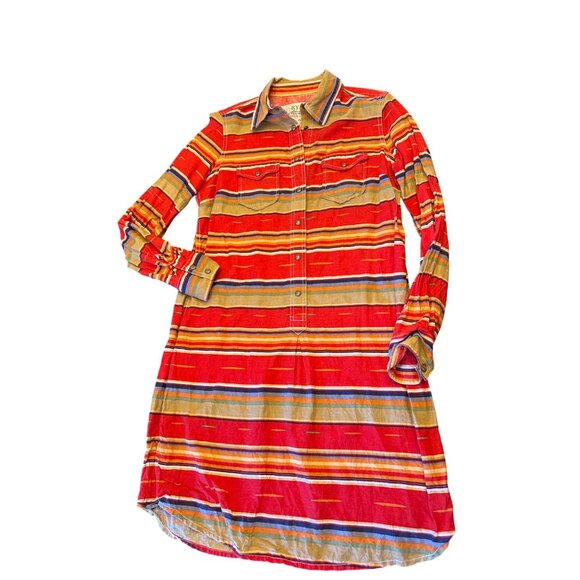 Ryan Michael Red Striped Linen Blend Button-Down Shirt Dress M Western