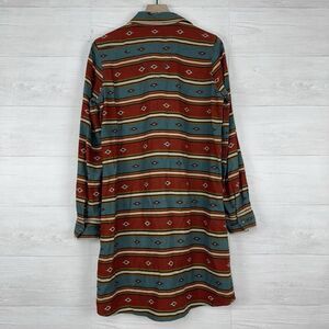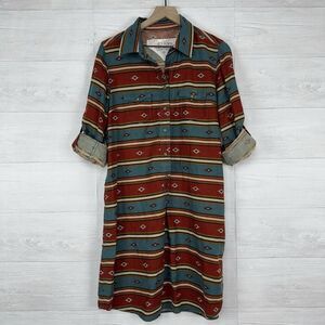 Ryan Michael Tunic Shirt Dress Women L Aztec Blanket Stripe Western Linen Blend