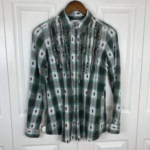 Ryan Michael Women Size S Button Up Shirt Rodeo South Western Embroidered Plaid