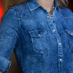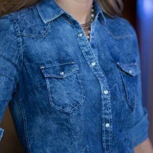 Brand new never worn with tags Women's Ryan Michael top. Stone snaps, V yokes and shoulders. patch pickets tab sleeves. 100% soft cotton. NWT