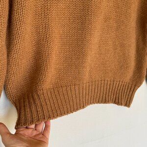 Ryan Roche Tan Camel Chunky 100% Cashmere Turtleneck Oversized Sweater Size Small