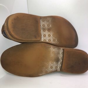 Pre-Owned- some gentle scuffs, slight sole, mark on heel additional polish needed & some creases, sticker footbed residue but overall Good Condition!!