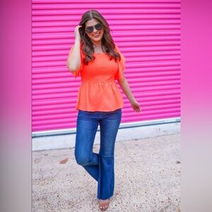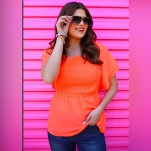 This smocked top features a stylish ruffle sleeve design that adds a touch of fun to any outfit. The smocking creates a flattering fit while the flowy fabric ensures comfort and breathability. Perfect for any occasion, this top can be dressed up or down to suit your style!