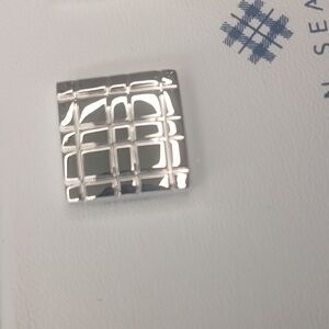 These Ryan Seacrest Distinction cuff links feature a sleek silver finish and a modern geometric design, perfect for adding a sophisticated touch to any ensemble. The intricate lattice pattern offers a unique architectural flair, making them a standout accessory for formal occasions.