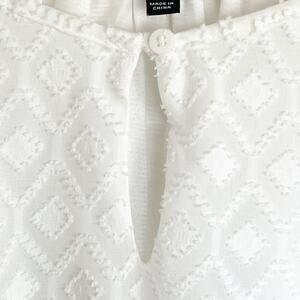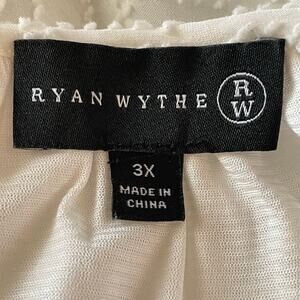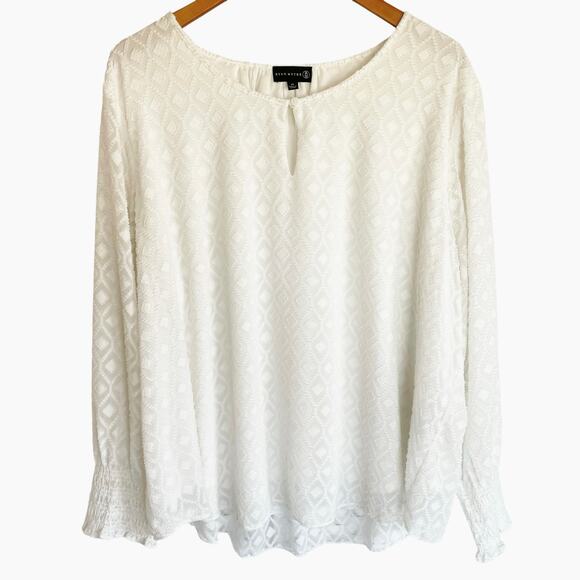 Ryan Wythe White Flowy Top Diamond Texture Smocked Sleeves Sz 3X Boho Cottage. Keyhole with button opening in front. Lined. Smocked detailed cuffs. Very feminine. Dress it up or down. In excellent preowned condition.