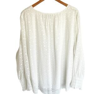 Ryan Wythe White Flowy Top Diamond Texture Smocked Sleeves Sz 3X Boho Cottage