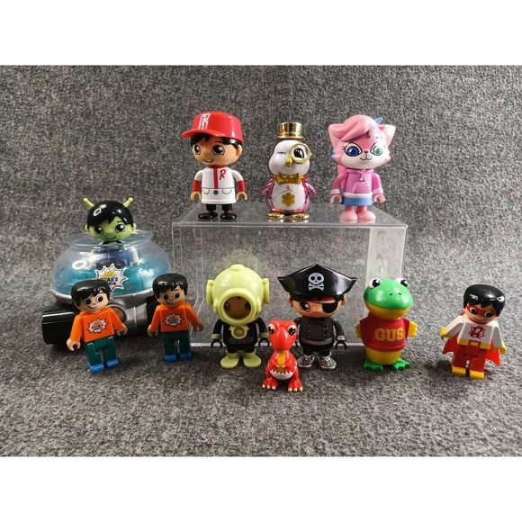 Ryan's World Figures Flying Saucer Ryan and Friends Lot Of 11 Assorted Figurines Ranges from minimal to evident signs of wear. Please see pictures for cosmetic details. Buying as is for 11 individual figures.