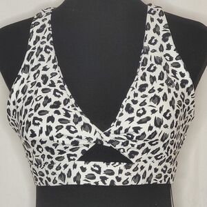 Ryderwear Adapt Twist Sports Bra Snow Leopard Keyhole Front Racer Back - Size L